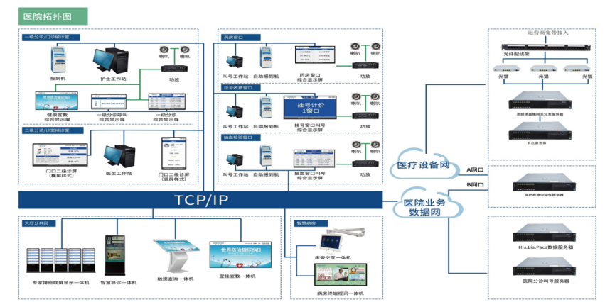 病房区域用到的信息化设备包括:电视,床旁一体机,床头信息屏,医护对讲甚至患者使用的手机皆可接入系统平台,实现视讯节