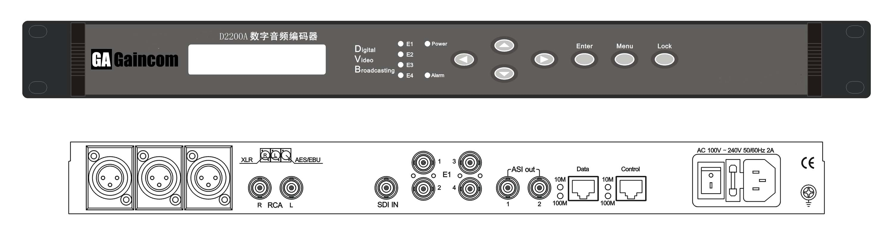 D2200A系列产品是GA通信公司(美国Gaincom Cmmunications Inc.)开发生产的MPEG-2数字音频编码器, 编码器(带IP输出)是一款拥有强大的音频编码功能的设备. 该设备支持模拟和数字音频信号,音频输入接口包含平衡模拟输入接口(XLR)和非平衡模拟输入接口(BNC),数字音频(AES/EBU)输入接口和嵌入式数字音频(SDI)输入接口。该编码器对音频信号进行实时编码并产生DVB传输流,传输流可由ASI、IP和E1接口输出。完全符合MPEG-2标准,因其极强的兼容性和优异的编码质量,D2200A数字音频编码器被广泛应用于数字广播系统中。