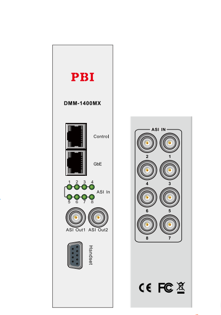 DMM-1400MX具有8路ASI输入接口,2路ASI输出接口(1+1备份),GbE IP接口,支持TS/IP 输入输出。1400MX基于DVB TS的PID包交换技术,可将输入的8路数字码流信号经数字复用处理,输出为一路多节目传输流MPTS;具有节目PID过滤和再复用功能。每个ASI输入接口有相对应的LED指示灯显示状态;配有Ethernet网络管理接口用于系统的远程管理,支持SNMP协议。