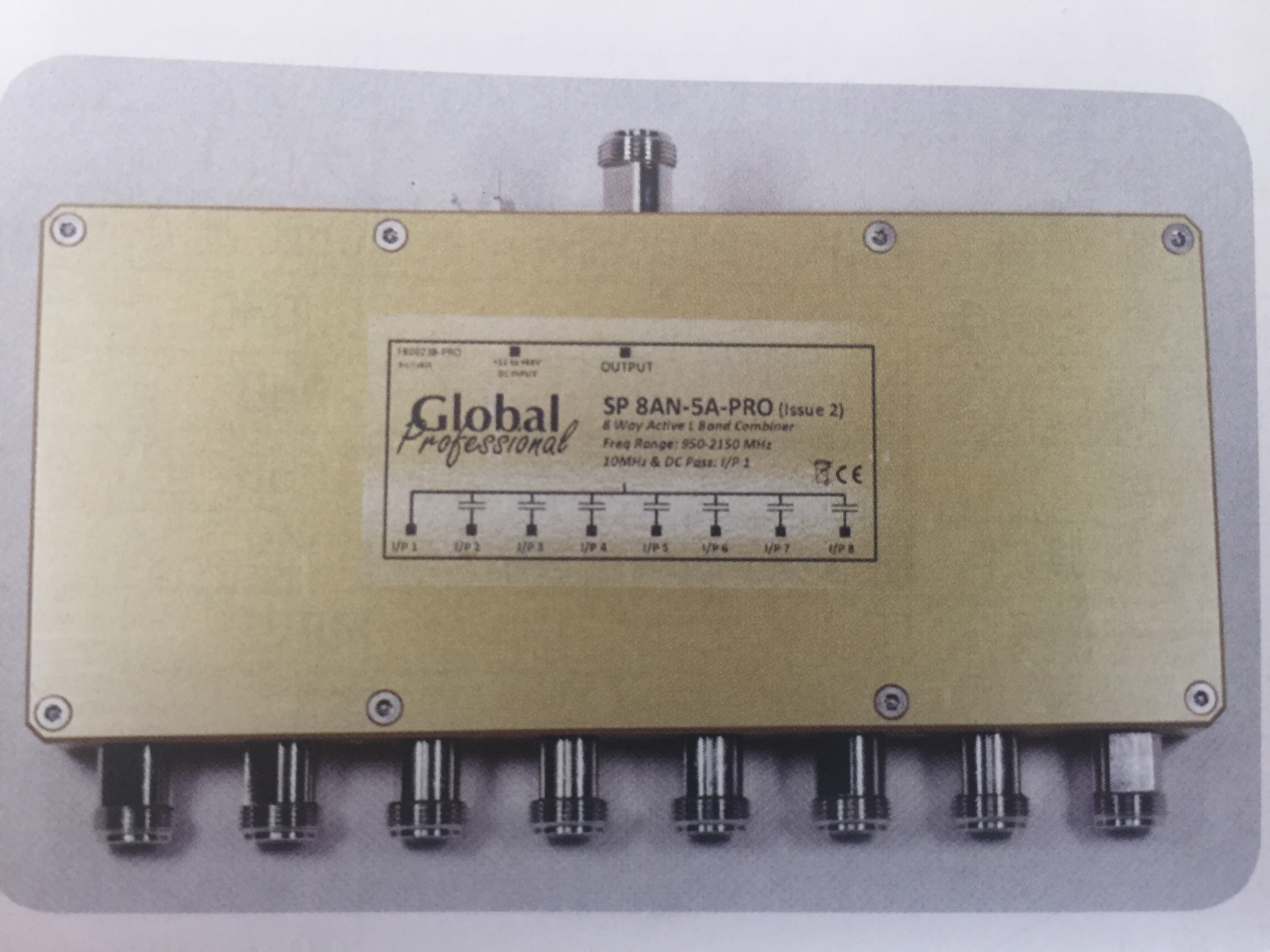 英国GLOBAL专业VSAT移动卫星双向地面站8路有源功分器广泛应用于移动卫星双向地面站,8个端口插入分配损耗0dB,功分器其中1个端口允许直流和10MHz参考信号通过,其余7个端口输入信号将被阻止,8路功分器上有1个专为BUC直流供电端口,功分器上有8个信号输出端口,其中1个端口可用于对LNB降频器供电和发送10MHz参考源信号,功分器另外7个端口无法用于供电。