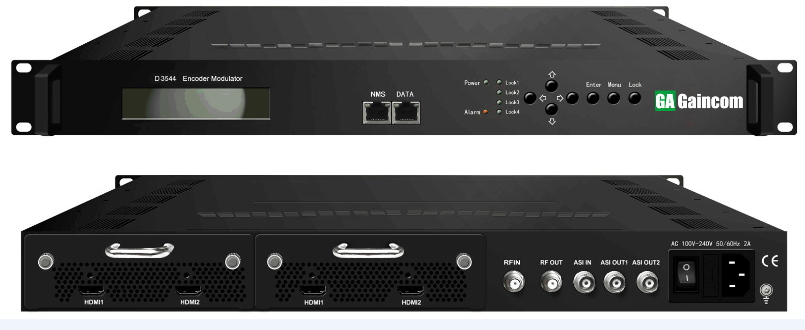 D3544系列编码调制一体机是GA通信公司(Gaincom Cmmunications Inc.)自主研发的集编码(或解调)和调制于一体的多功能设备。设备支持MPEG-2或MPEG-4 AVC/H.264视频格式编码,经DVB-T(DVB-C/ATSC/ISDB/DTMB)调制后射频输出,射频输出的频率范围为30 ~ 1000Mhz。它的信号源可以是闭路电视摄影机,蓝光播放器和天线等,其输出信号是由DVB - T(DVB-C/ATSC/ISDB/DTMB)标准电视或机顶盒接收。该装置可适用于公共场所如地铁,市场大厅,剧院,酒店,度假村等广告系统。它也可用于监测,培训和教育公司,学校,医院等。除此之外,还在酒吧等场所提供高清体育频道和贵宾娱乐频道。