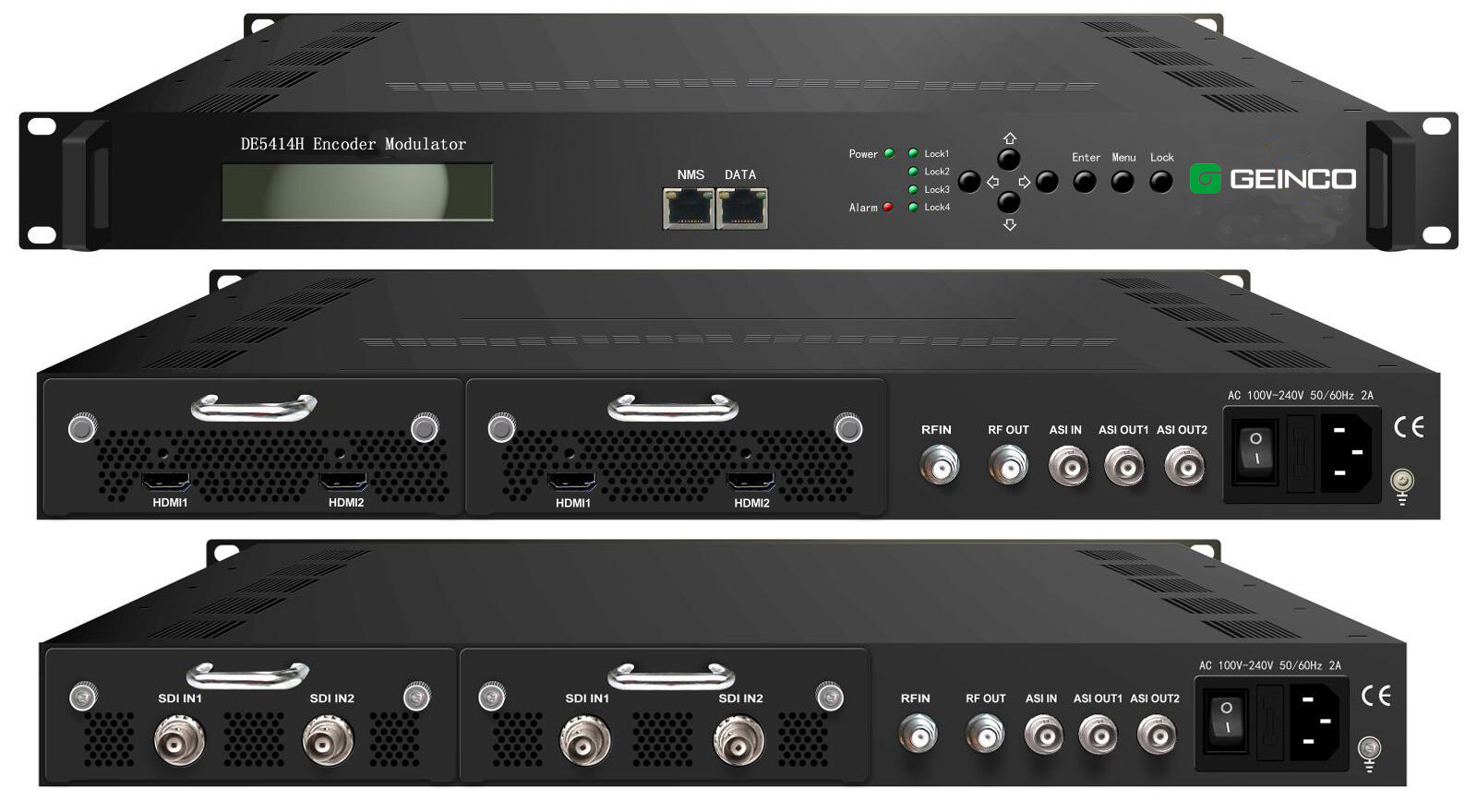 DE5414H系列编码调制一体机是集编码和调制于一体的多功能设备。设备支持MPEG-2或MPEG-4 AVC/H.264编码标准,经DVB-T(DVB-C/ATSC/ISDB)调制后射频输出,射频输出的频率范围为30 ~ 1000Mhz。它的信号源可以是卫星信号,闭路电视摄影机,蓝光播放器和天线等,其输出调制方式符合DVB - T(DVB-C/ATSC/ISDB)标准电视和机顶盒接收。该装置可适用于公共场所如地铁,市场大厅,剧院,酒店,度假村等广告系统。它也可用于监测,培训和教育公司,学校,医院等。除此之外,还在酒吧等场所提供高清体育频道和贵宾娱乐频道。