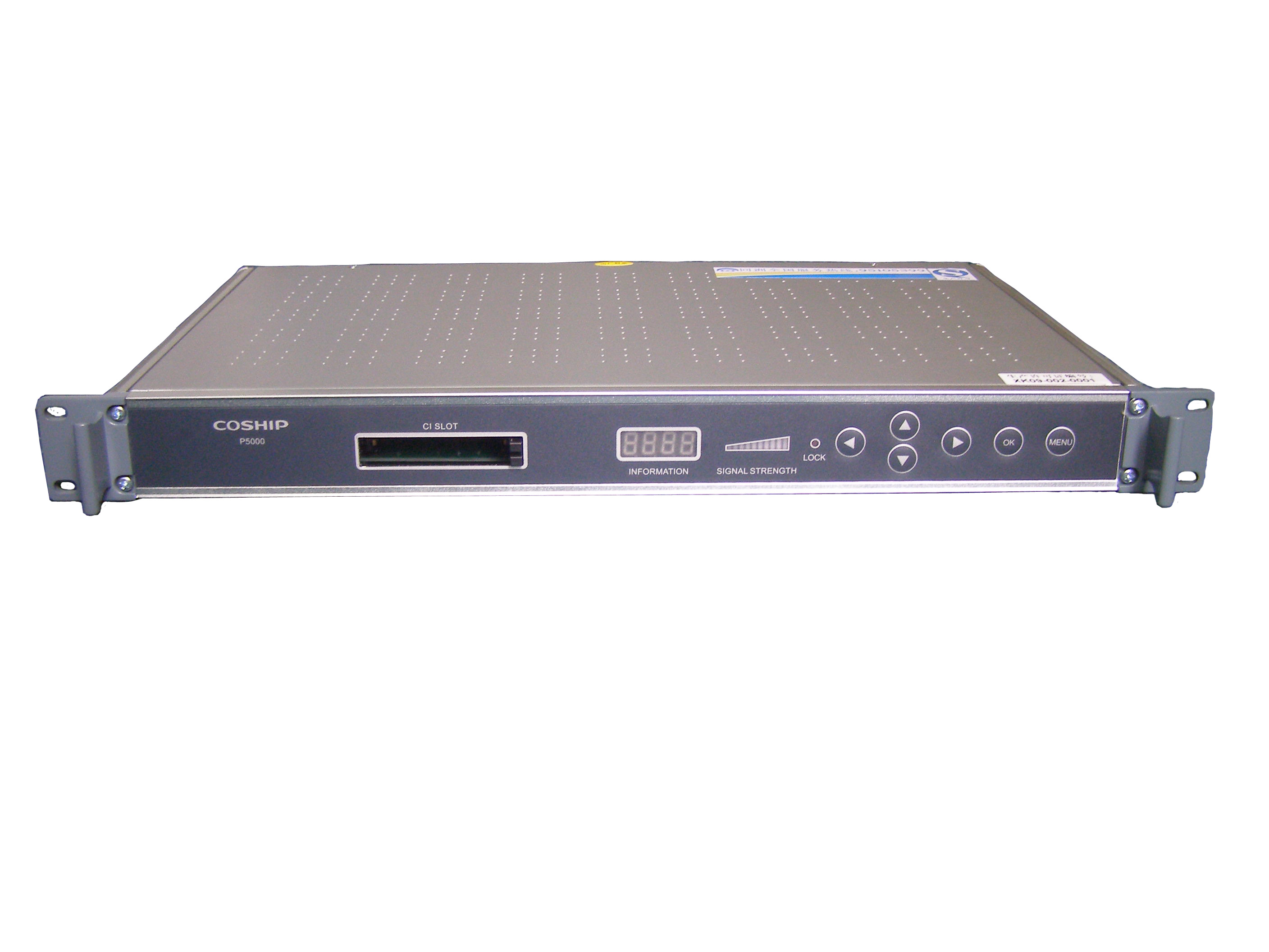 ·LED显示:4段LED显示频道、状态 ·信号强度指示:10级LED显示接收信号强度 ·按键:上、下、左、右、MENU、OK ·智能卡插槽:1CA卡槽或2CI卡槽 |